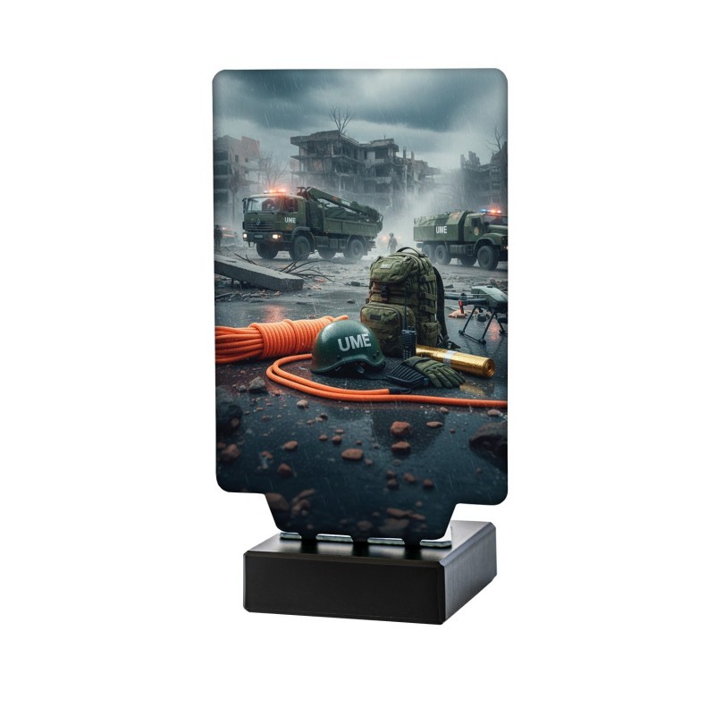 TROFEO AURA DE EMERGENCIA UME REALIZADO EN ACERO Y BASE DE MARMOL NEGRO. DISPONIBLE EN 3 MEDIDAS.