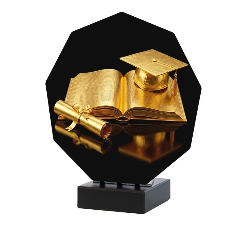 TROFEO LUXOR CULTURAL REALIZADO EN ACERO Y BASE DE MARMOL NEGRO. DISPONIBLE EN 3 MEDIDAS.