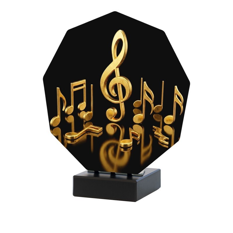 TROFEO LUXOR DE MUSICA REALIZADO EN ACERO Y BASE DE MARMOL NEGRO. DISPONIBLE EN 3 MEDIDAS.