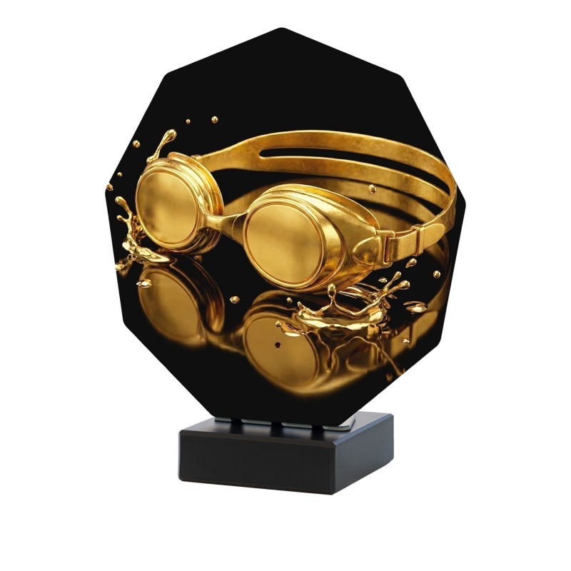TROFEO LUXOR DE NATACION REALIZADO EN ACERO Y BASE DE MARMOL NEGRO. DISPONIBLE EN 3 MEDIDAS.