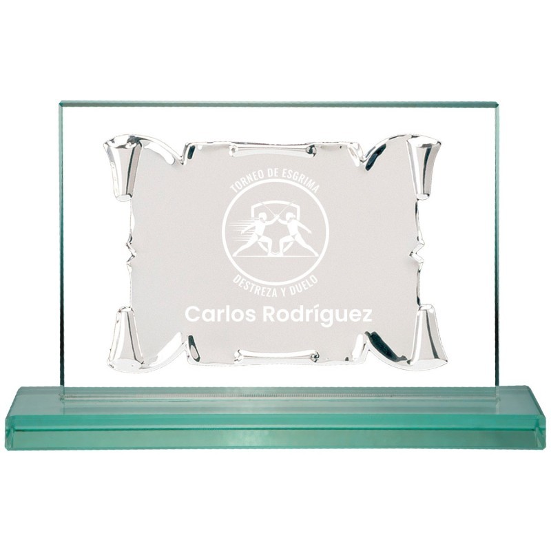 PLACA 17-047 PLATA SOPORTE CRISTAL. MEDIDA CRISTAL 25,5 X 14 CM – PLACA 16 X 10 CM.